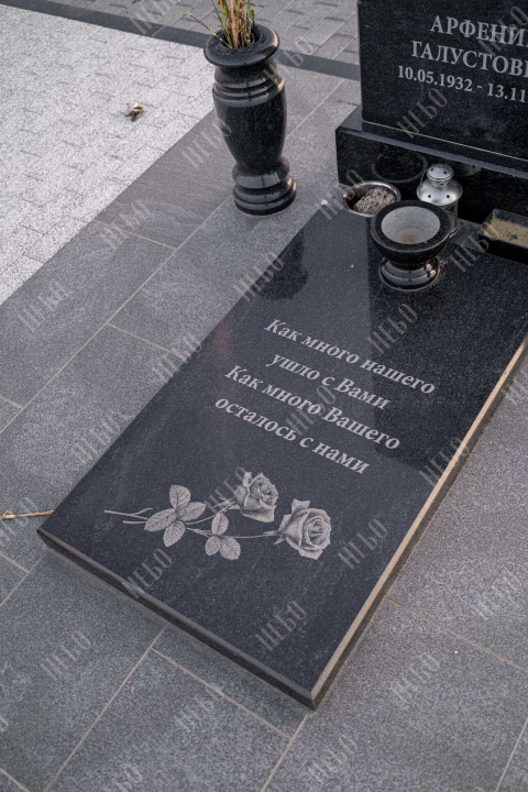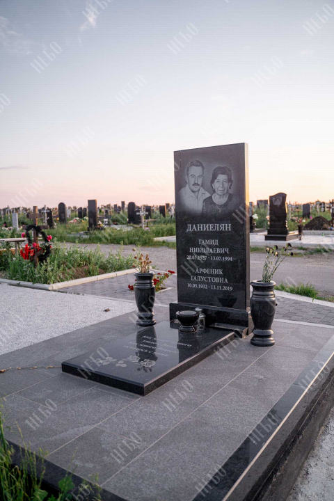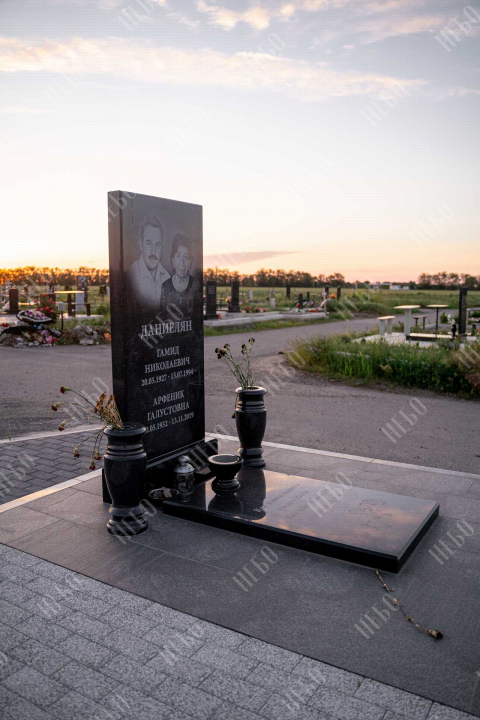 Прямой памятник для родителей выполнен в строгом лаконичном стиле с использованием четких геометрических линий. Черный цвет и прямоугольные формы стелы и надгробия являются классической комбинацией, которая часто используется при изготовлении памятников. Закрытое гранитное надгробие упрощает уход за ритуальным изделием и позволяет расположить памятную надпись, сделав на ней акцент. При изготовлении памятника специалисты тщательно прорабатывают соотношение форм, размеров и нагрузку, чтобы исключить деформации и искажения изделия со временем.