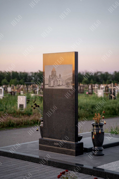 Для изготовления памятника использован гранит карельский габбро-диабаз. Это горная порода, отличающаяся прочностью и повышенной износостойкостью. Карельский габбро-диабаз устойчив к влаге и перепадам температур. Его плотность выше, чем у мрамора, поэтому именно его использовали при воздвижении вековых колонн исторических зданий. Гранитный памятник габбро-диабаз не требует особого ухода, обладает насыщенным черным цветом, что делает внешний вид памятника благородным и лаконичным.