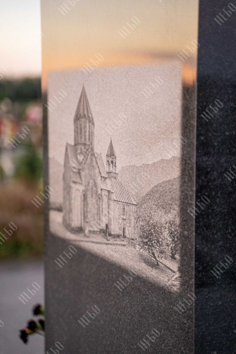 Нанесение фотографии мы производим на современном оборудовании с использованием алмазных игл. Технология обеспечивает 100% сходство исходной фотографии с готовым изображением. Такой метод нанесения исключает любые деформации. Изображение, нанесенное алмазными иглами, является долговечным и его видно в любую погоду.